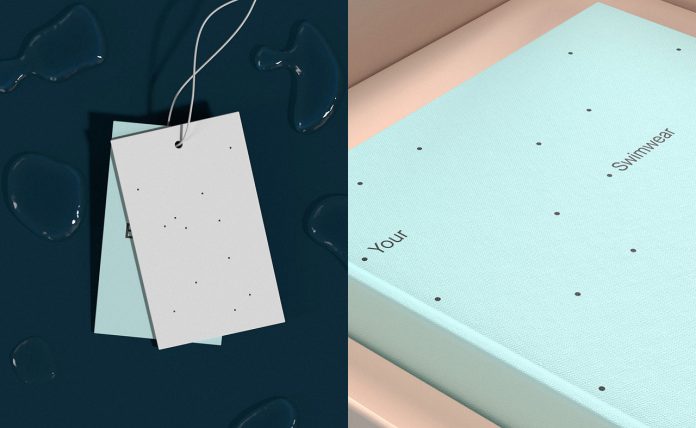 泳衣泳裝品牌VI設計,平面設計師提出了一個干凈而獨特的字標。通過修改每個字母的底部,模仿了碎浪。